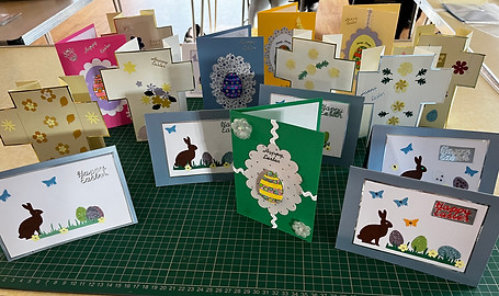 At our craft meeting members were shown how to make Easter cards. Each member was able to make three differeent Easter cards and here is a photo of their results. Another session is planned for the Autumn when the theme will be Christmas cars..